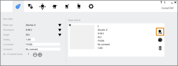 dentalcam assigns a unique ID number to the blank and adds it to the archive.