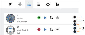 Part of the blank changer in which you store the blanks for automatic loading. slot is empty and assigned to the blank in the working chamber. - dentalcnc displays the slot number in the center of the blank magazine