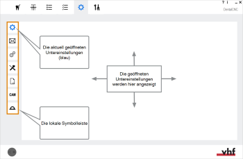 Die lokale Symbolleiste für die Untereinstellungen in den Programmeinstellungen von dentalcnc