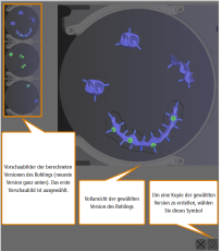 Wenn dentalcam einen Auftrag berechnet, speichert das Programm eine Kopie des Rohlings im Zustand vor der Berechnung. Da Sie jeden Auftrag mehrmals bearbeiten und berechnen können, können in Ihrem Archiv mehrere alte Versionen jedes Rohlings vorhanden sein. Sie können eine dieser älteren Versionen auswählen und eine Kopie davon erstellen.