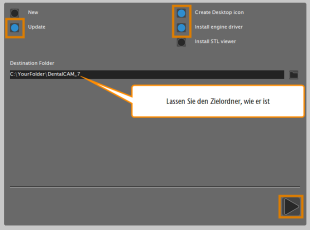 • Wenn Sie nur dentalcnc verwenden, benutzt das Programm den Dongle während der Installation, um Ihren Anspruch auf ein kostenloses Upgrade zu prüfen.