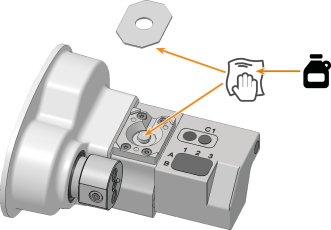 Reinigen Sie den Rohlingshalter von allen Seiten mit einem feuchten Pinsel. Reinigen Sie vor allem die Öffnung des Rohlingshalters.
