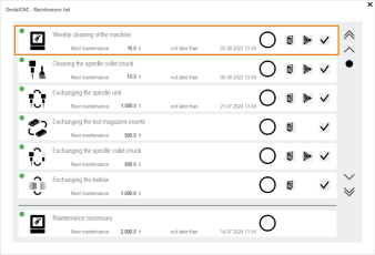 Wählen Sie das abgebildete Symbol für den Eintrag Wöchentliche Maschinenreinigung.