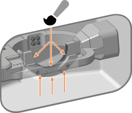 Reinigen Sie den Rohlingshalter von allen Seiten mit dem Pinsel. Reinigen Sie vor allem alle Öffnungen und beweglichen Teile des Rohlingshalters.