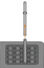 • Setzen Sie die Werkzeuge mit der Schneide nach unten in die Werkzeugpositionen ein. Schieben Sie sie hinein, bis der Ring den Werkzeugmagazineinsatz berührt.