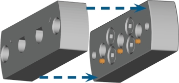 Mit dem DENRACLE Abutmenthalter kann die Maschine Abutments mit vorgefertigten Anschlussgeometrien bearbeiten, die in den Halter passen ( Unterstützte vorgefertigte Abutmentrohlinge in dentalcam 8).