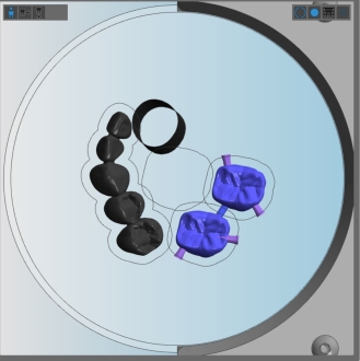 - Positionieren Sie alle Stege auf dem Äquator. Wenn der Äquator auf der Prepline liegt, positionieren Sie den Steg ca. 1 mm über dem Äquator.