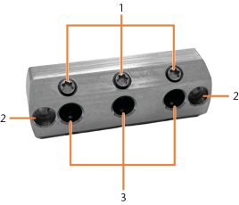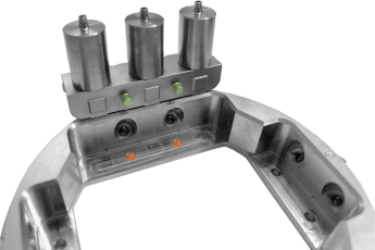 The positioning pins (marked green) on the blank holder must fit into the openings (marked orange) on the back of the abutment holder.