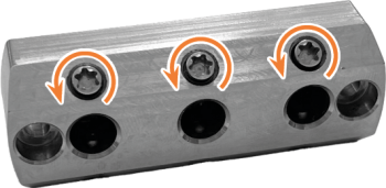 Insert the 2 screws as far as possible into the top and bottom openings in the abutment holder.