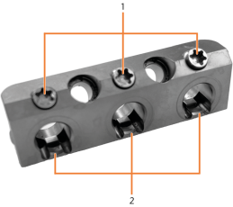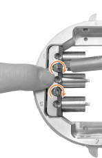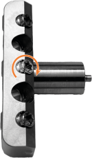 The positioning pins on the underside of the abutment grip (marked green) must fit into the openings in the abutment holder (marked orange).