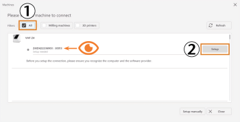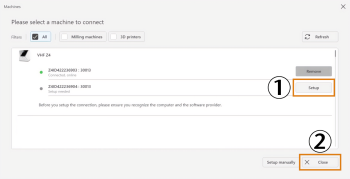 Select Setup for the desired machine.