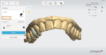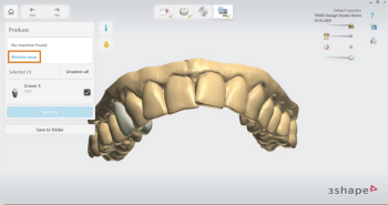 If you use multiple machines in the 3Shape Produce workflow, select the machine in TRIOS Design Studio:
