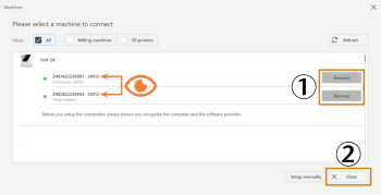 Select Remove for the desired machine.