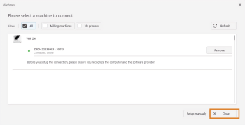 Save the machine configuration with Close.