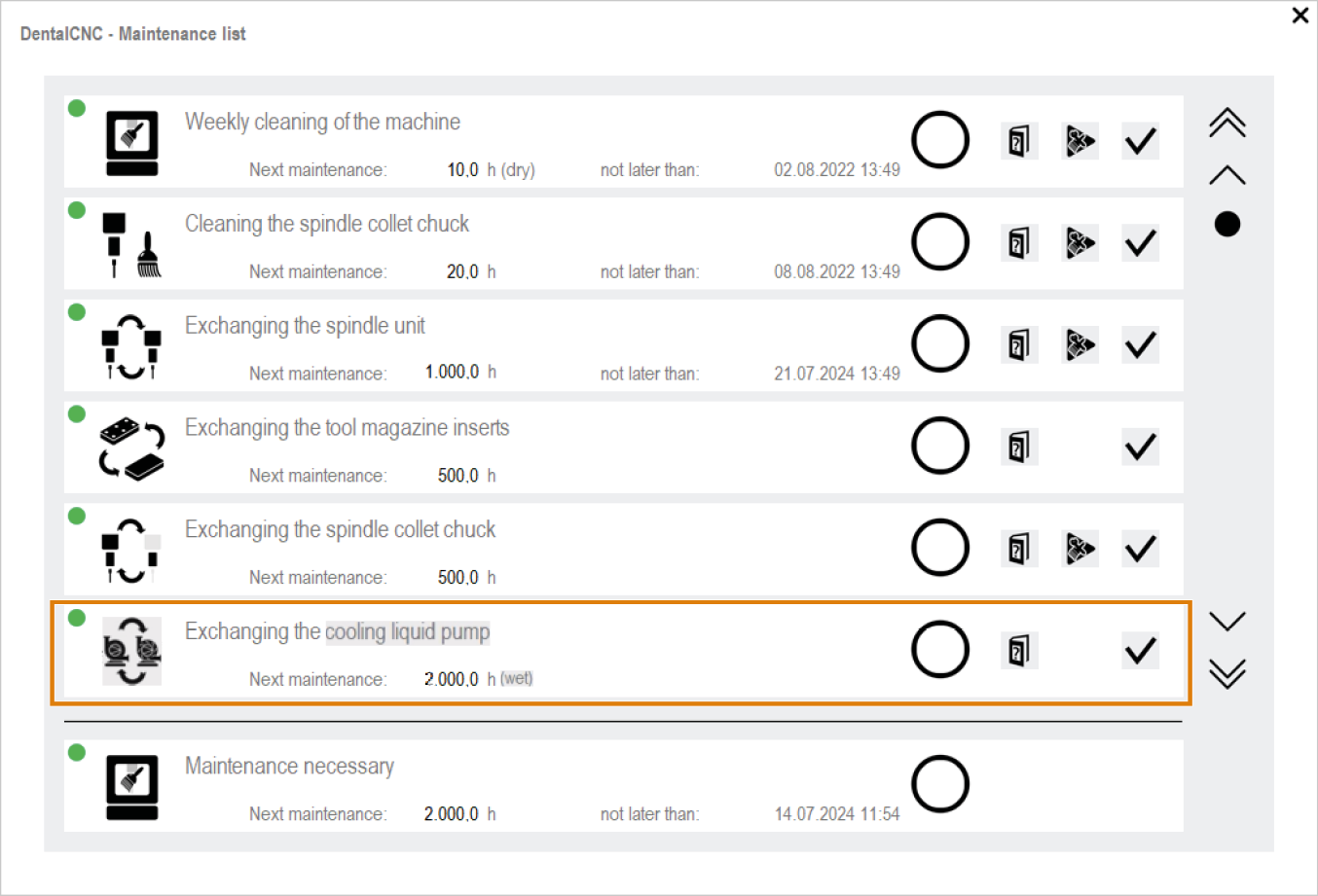 Select the following icon of the Exchange cooling liquid pump entry: