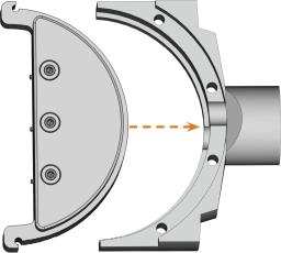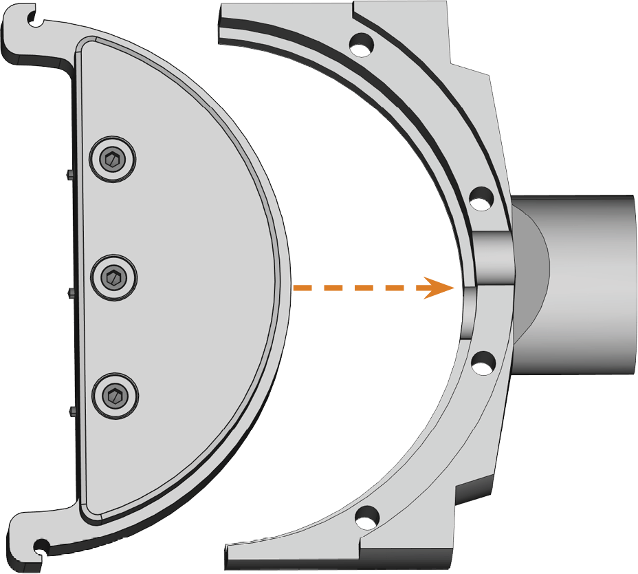 Position the block so that the positioning pin at the block holder (markings on the left) lies in the groove in the block shaft (marking on the right).