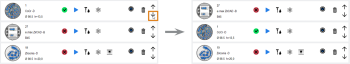 Exemple : Déplacement de l'entrée supérieure vers le bas ; icône sélectionnée marquée en orange