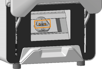 Alignez l’évidement (marqué en bleu) situé dans la partie inférieure du porte-pièce avec la goupille de positionnement (marquée en orange) située dans la machine et positionnez le porte-pièce.