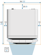 Vous avez besoin d’un espace libre d’au moins 47 x 55 x 67 cm / 19 x 22 x 26 pouces (L/P/H) à l’avant du carton.