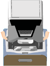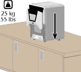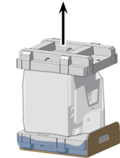- La machine est placée sur un insert séparé. Prenez l’insert par la poignée et retirez la machine du carton.