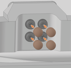 Retirez les 4 capuchons de protection (marqués en orange) des 4 vis de fixation du module d'axe A-B.