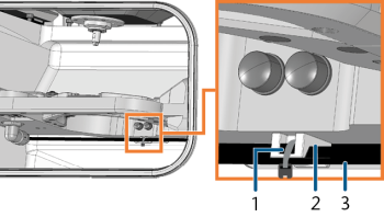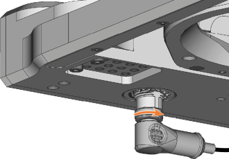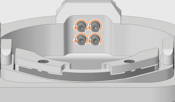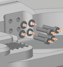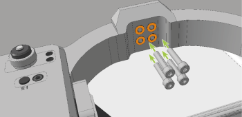 Utiliser le tournevis dynamométrique (5,0 Nm avec embout TX25) : Visser le module d'axe A-B en croix avec les 4 rondelles (marquées en orange) et les 4 vis de fixation.