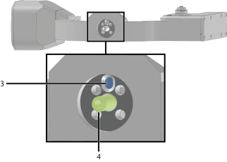 Insérez la tige de positionnement du module d’axe A-B (4) dans l’ouverture de l’arbre d’entraînement (2).