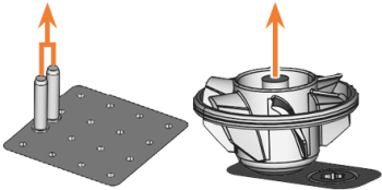 Retirez le porte-pièce du module d’axe A-B démonté. Fixez le porte-pièce sur le module d’axe A-B de rechange.