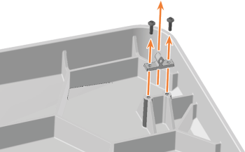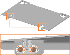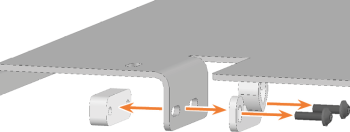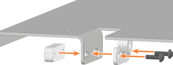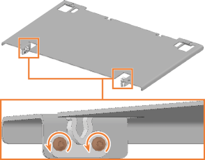 Insérez les boulons (marqué en orange) de la couverture de service dans les supports (marqués en vert) du couvercle de sécurité.
