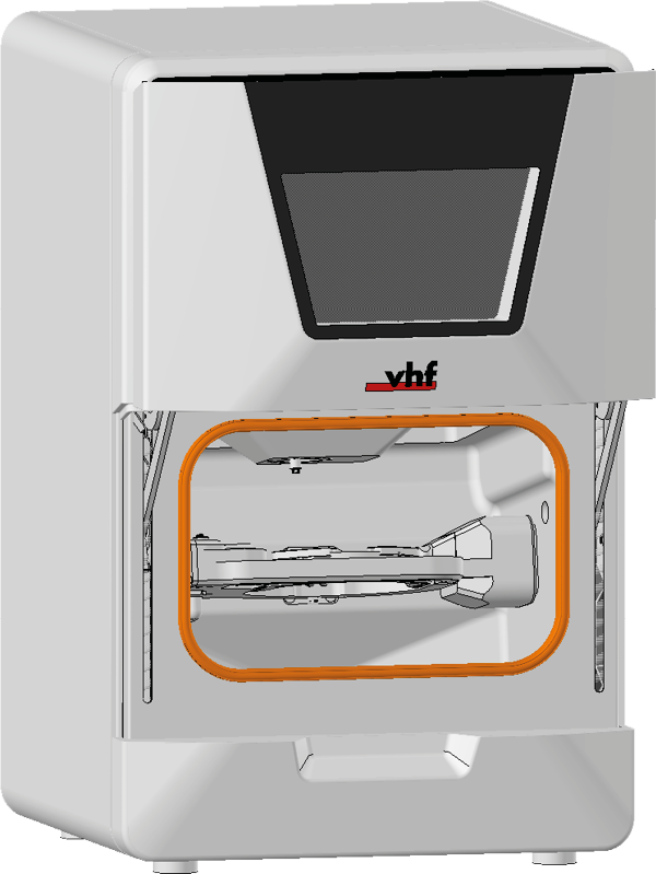 Le joint de la porte de la chambre de travail est fixé sur le bord du boîtier de la machine qui entoure l'ouverture vers la chambre de travail.