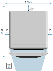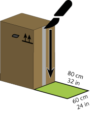 Vous avez besoin d’un espace libre d’au moins 60 x 80 x 80 cm / 24 x 32 x 32 pouces (L/P/H) à l’avant du carton.