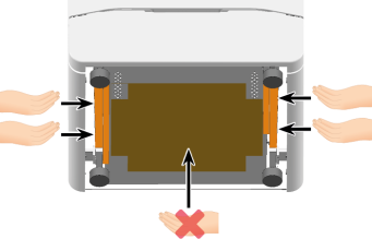Ne saisissez pas le morceau de carton placé en dessous de la machine.