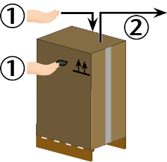 - Saisissez le carton par les poignées encastrées. Soulevez le carton de la palette.