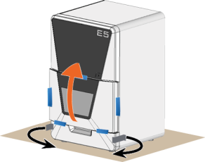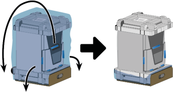 Coupez la fermeture du capot de protection de transport bleu situé à l'avant de la machine.