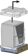 - La machine est placée sur un insert séparé. Prenez l’insert par la poignée et retirez la machine du carton.