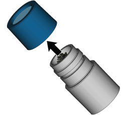 3. Retirez les corps étrangers et la saleté du couplage du réservoir (marqué en vert) et de la pièce correspondante sur la machine.