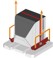 Soulevez le cadre de la caisse (marqué en orange) de la palette.