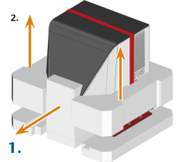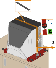 Retirez les vis (marquées en orange) qui fixent le couvercle de la caisse de transport.