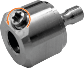 Vissez la vis de remplacement dans le sens inverse des aiguilles d’une montre. Ce faisant, guidez le filetage de la vis avec un doigt afin que la vis reste dans l’axes.