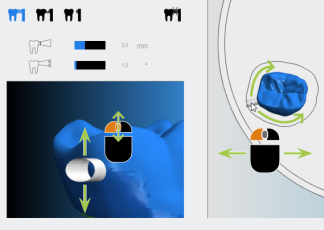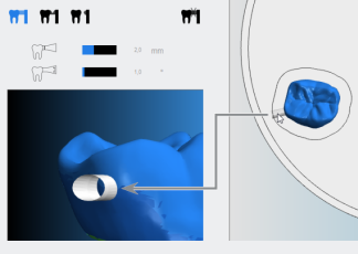 - La barra si aggancia automaticamente alla superficie esterna dell’oggetto. dentalcam visualizza la barra nell'area di anteprima nella colonna di sinistra.