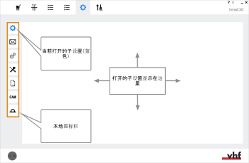 dentalcnc 应用程序设置中包含一个本地图标栏,您可以通过这些图标访问以下子设置: