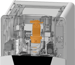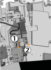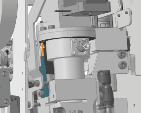 转动主轴单元,使定位开口(标记为橙色)位于左后方。