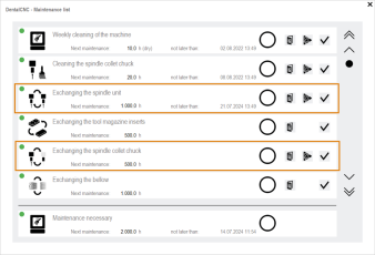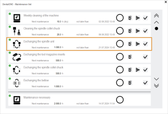 - 在主图标栏中选择以下图标来打开 维护部分窗口: