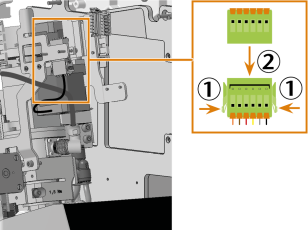 将连接器上的两个固定夹推向中间,然后将连接器从插座中拉出。