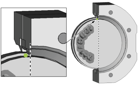 2. dentalcnc加工视图中选择所示图标,打开坯体固定器。