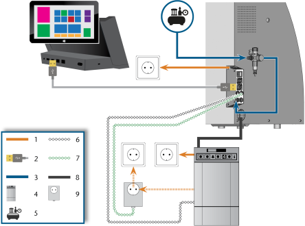 该计算机连接到您的机器并运行 dentalcam 和 dentalcnc。没有连接到机器。 - 打开机器的主电源开关。