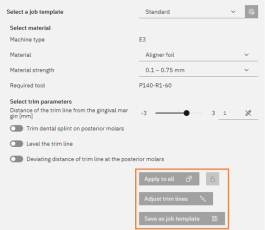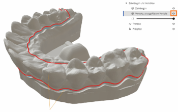 重要信息:一旦您更改加工任务的其他加工参数,相关牙弓模型的计算将被更新,并且之前对修剪线的调整将被重置。