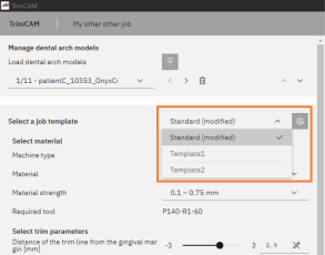 加工任务包含修剪一个或多个牙科咬合夹板所需的所有数据:3D 数据、底座和修剪参数、计算的铣削路径等。
