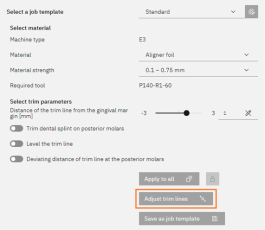 重要信息:一旦您更改加工任务的其他加工参数,相关牙弓模型的计算将被更新,并且之前对修剪线的调整将被重置。